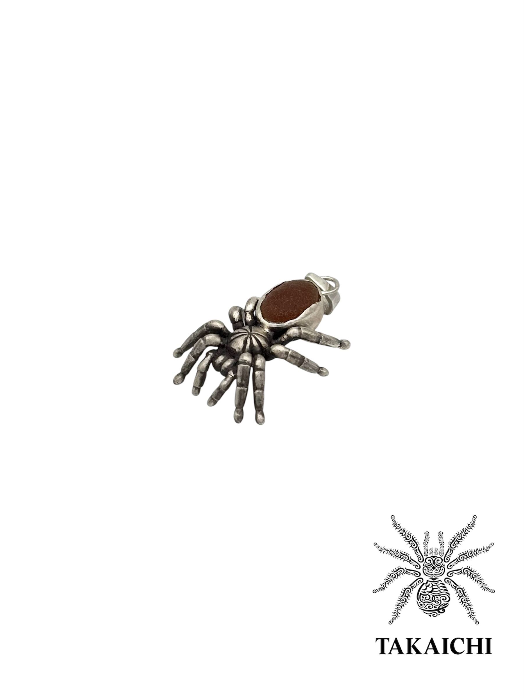 タランチュラのリアルな造形に、天然の原石をお尻部分にはめ込んだペンダントトップです。
