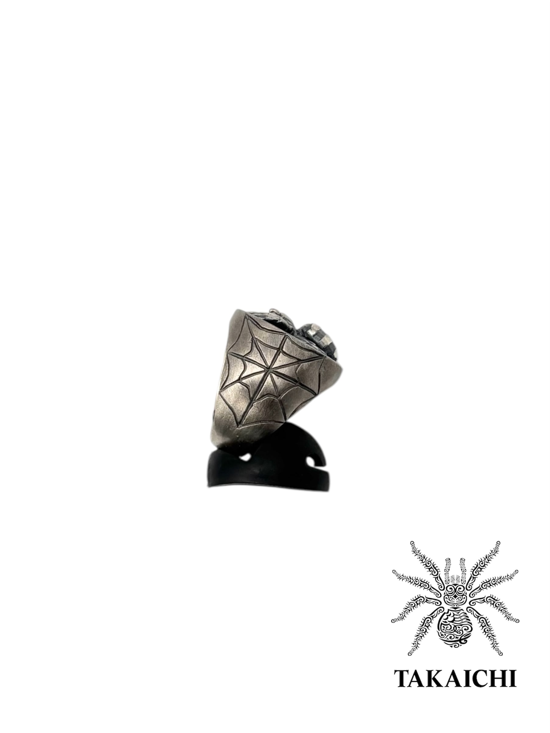 シグネットリングの重厚さに、立体的のジョロウグモが張り付いた存在感あるリングになってます。