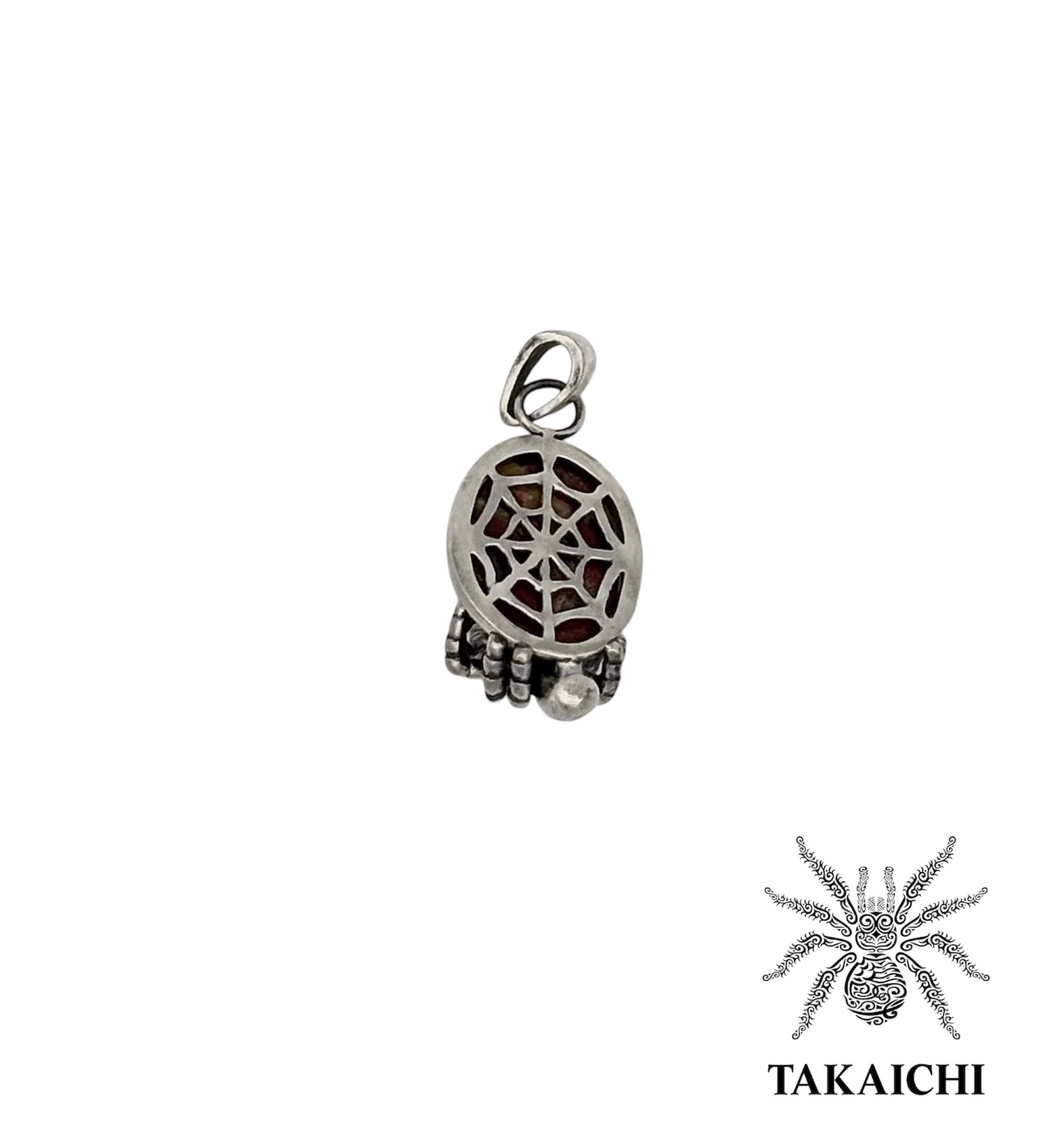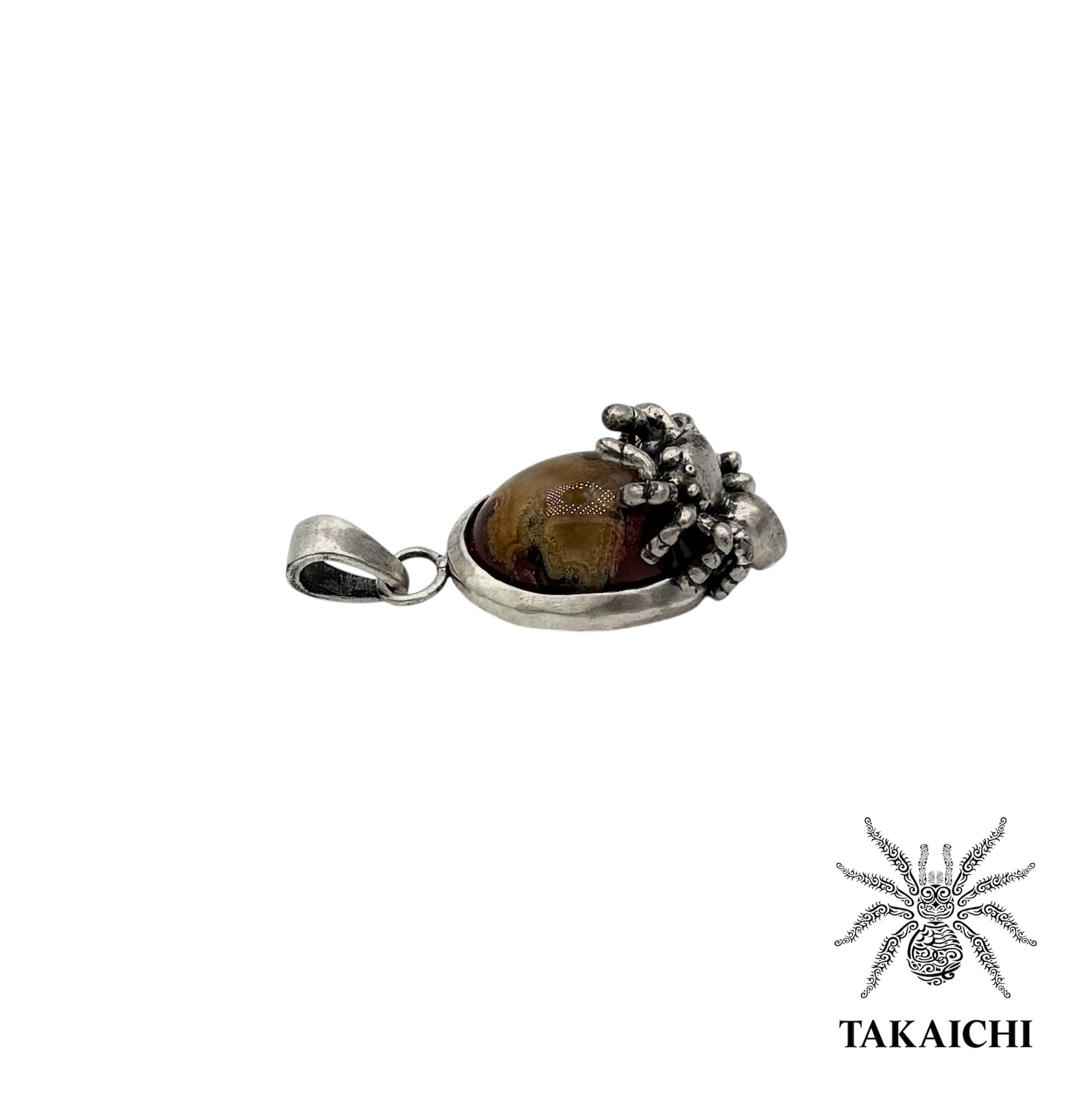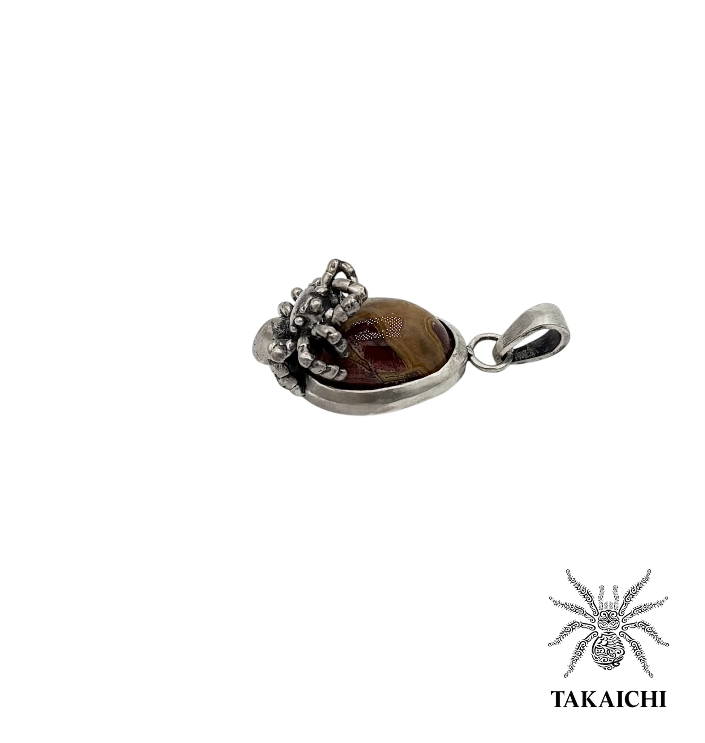 明るめの瑪瑙をハエトリグモで留めたペンダントトップ。
