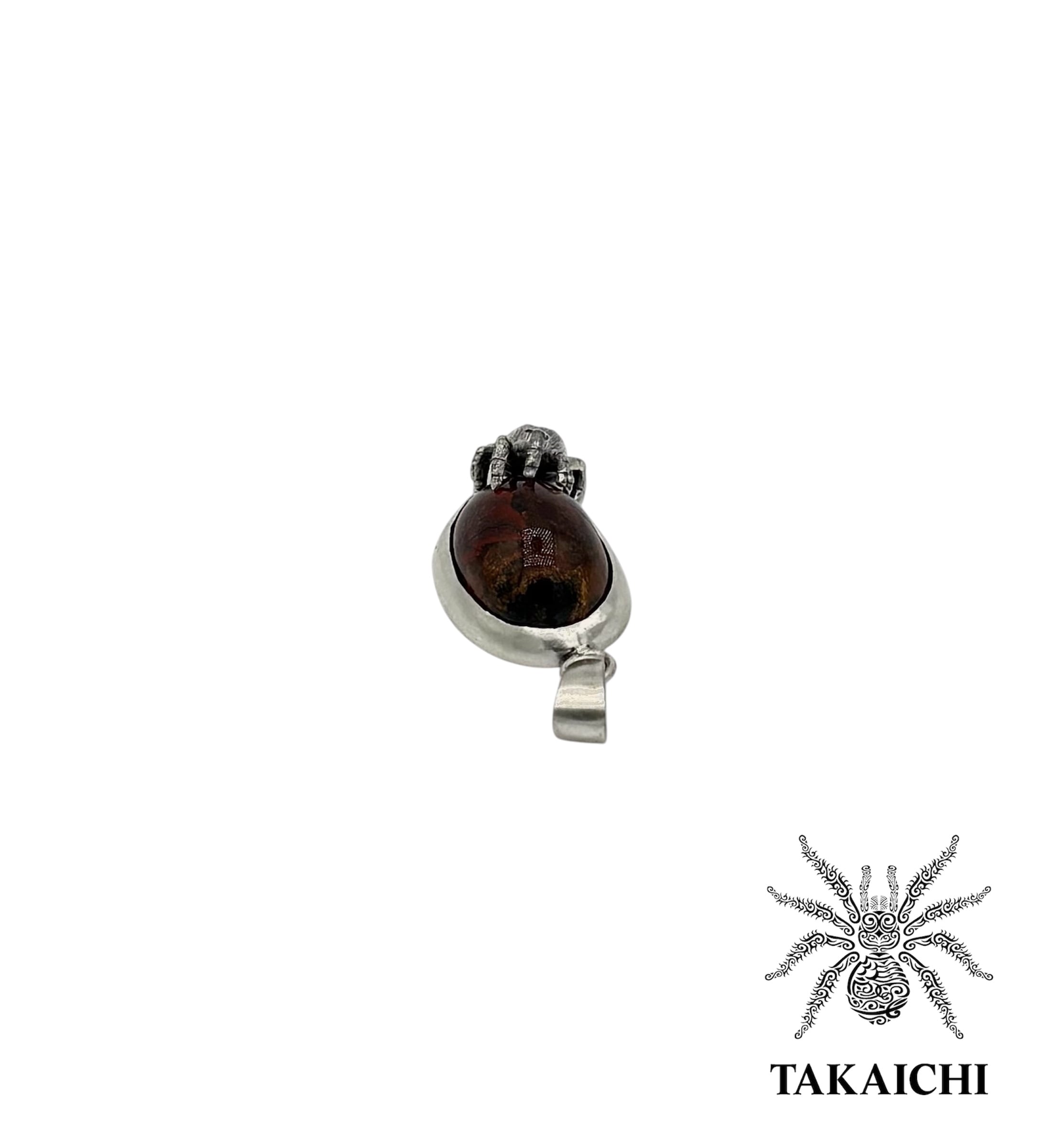 赤みのある瑪瑙をセアカゴケグモで留めたペンダントトップ。