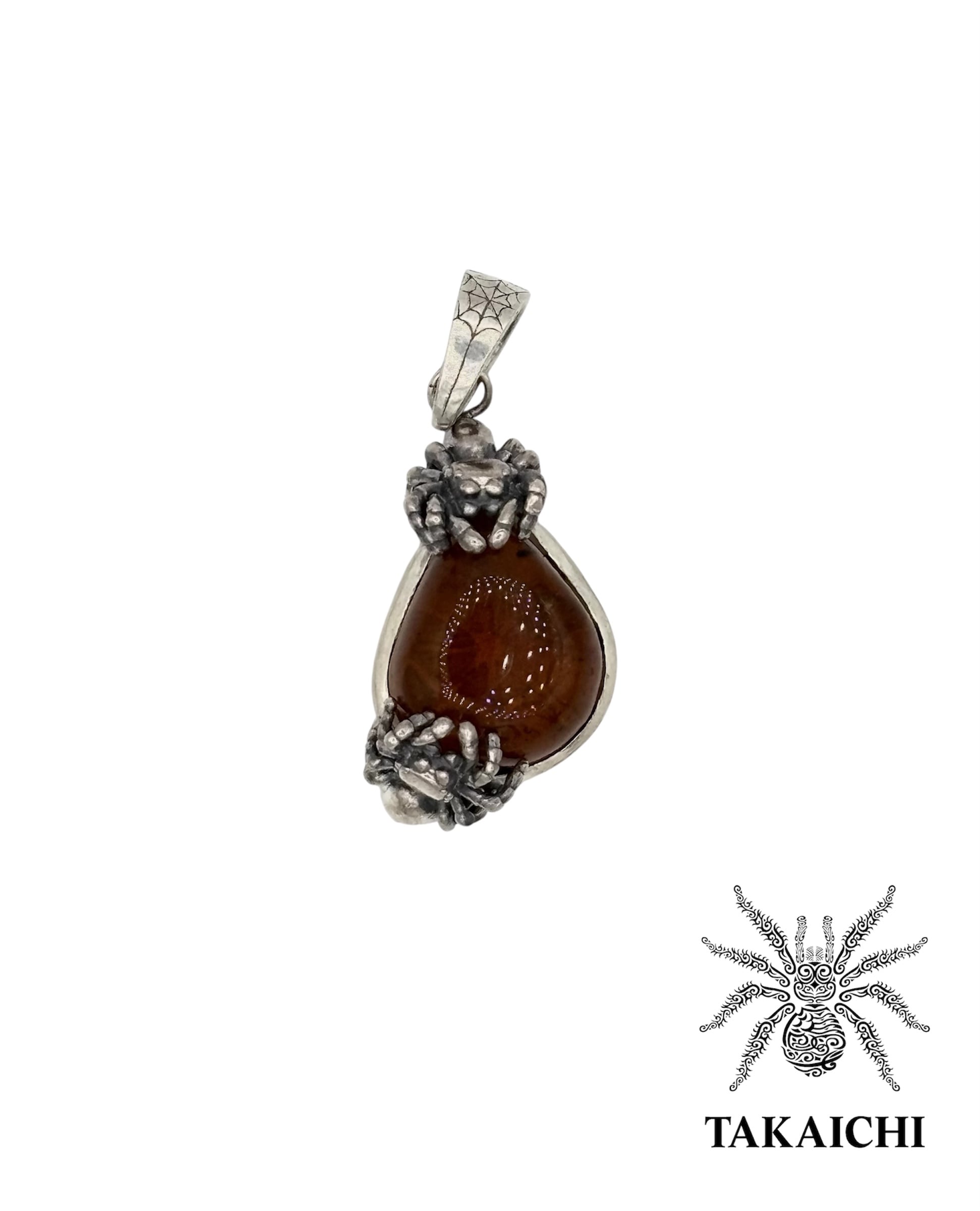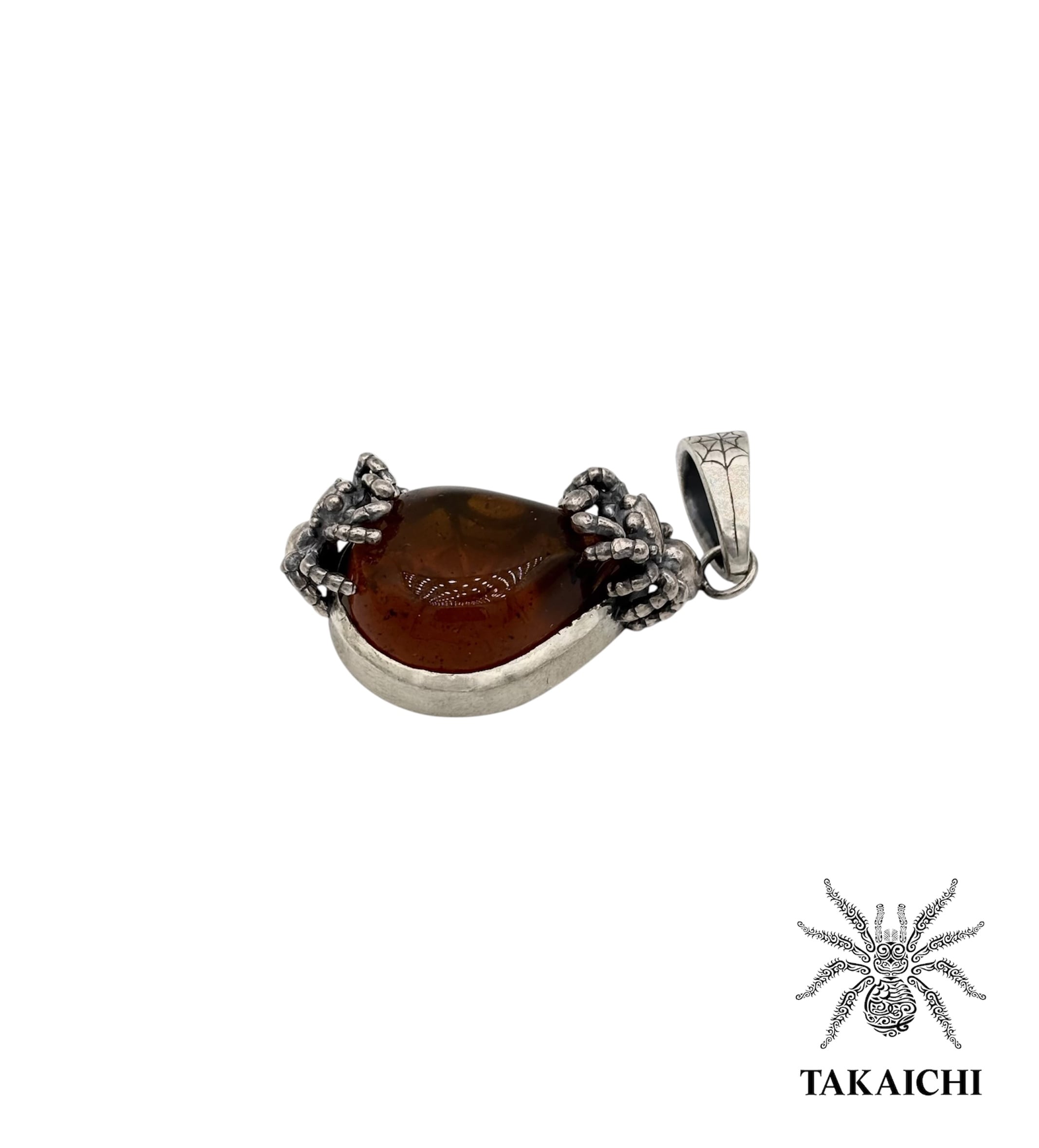 内部には小さな蜘蛛を内包した個体を使用しておりインパクトのある大ぶりな琥珀のトップです。