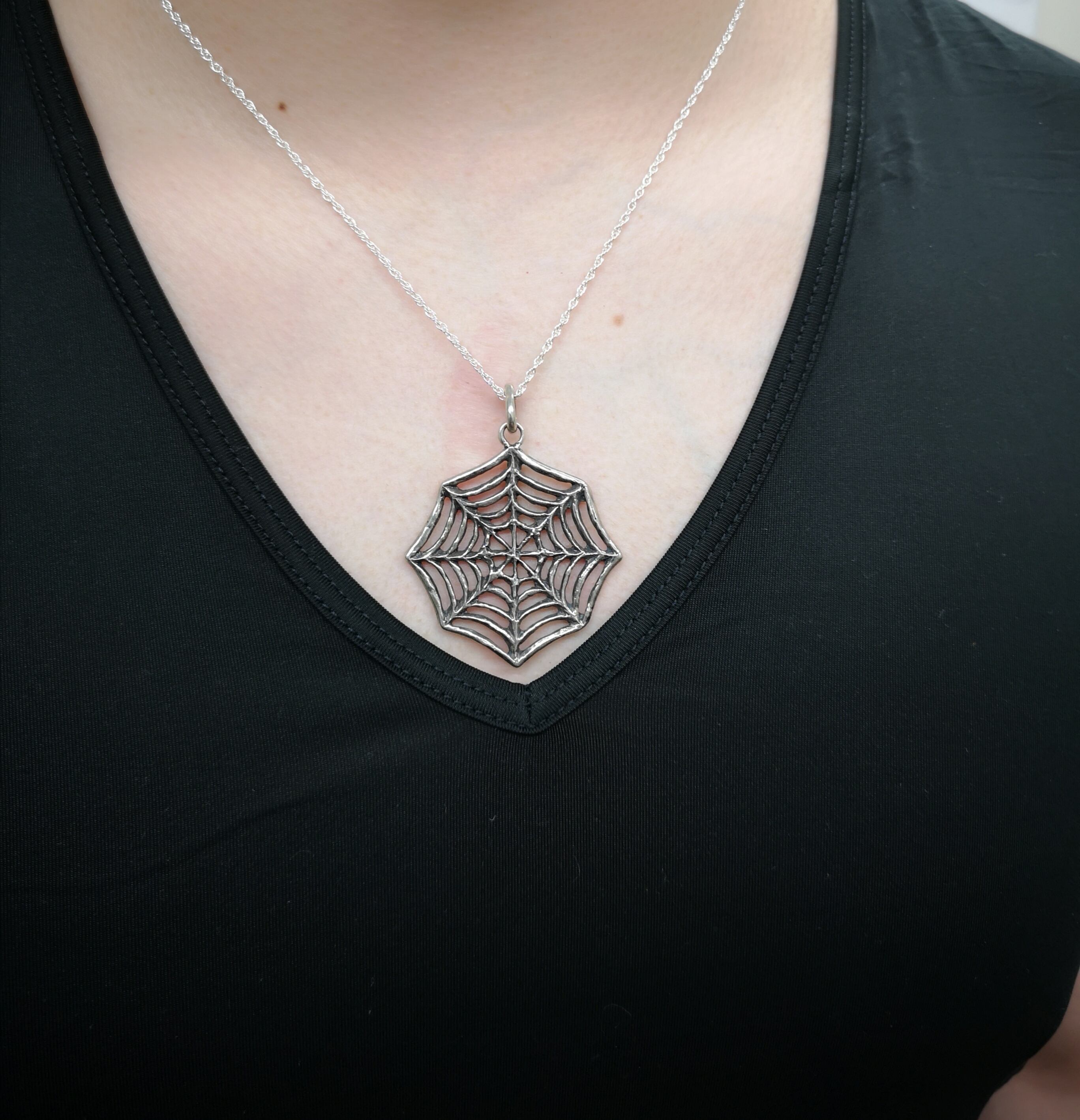 繊細ながら存在感のある大きめサイズの蜘蛛の巣をモチーフにしたネックレスです。