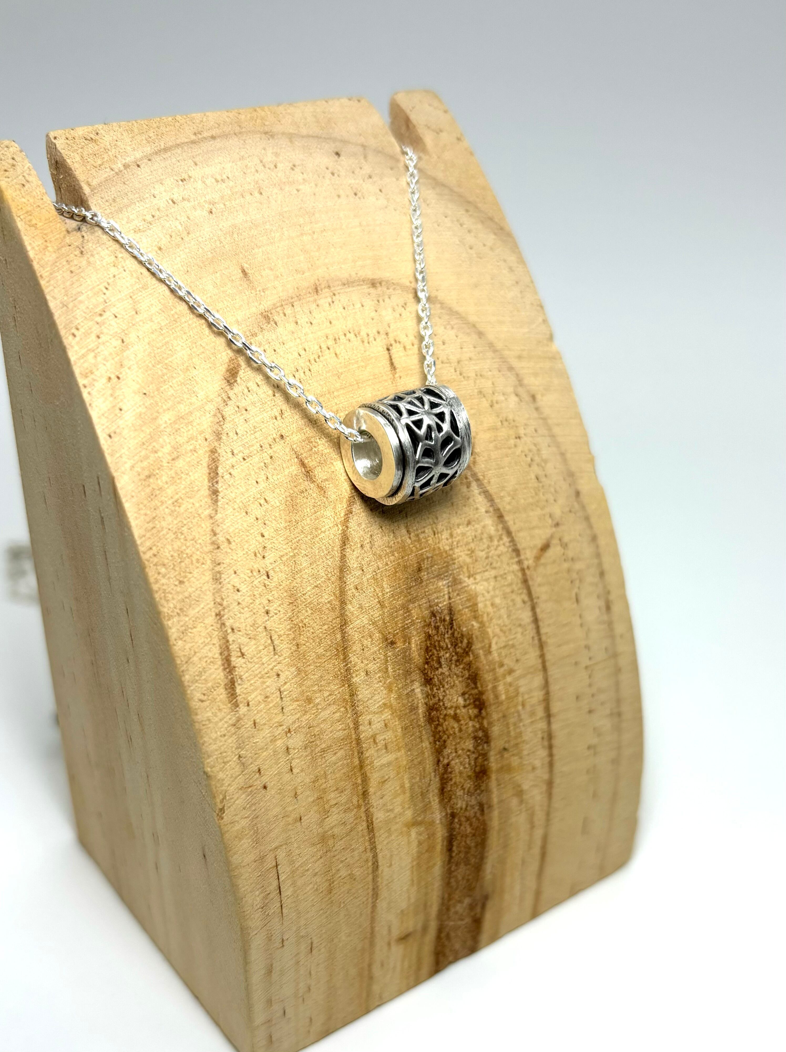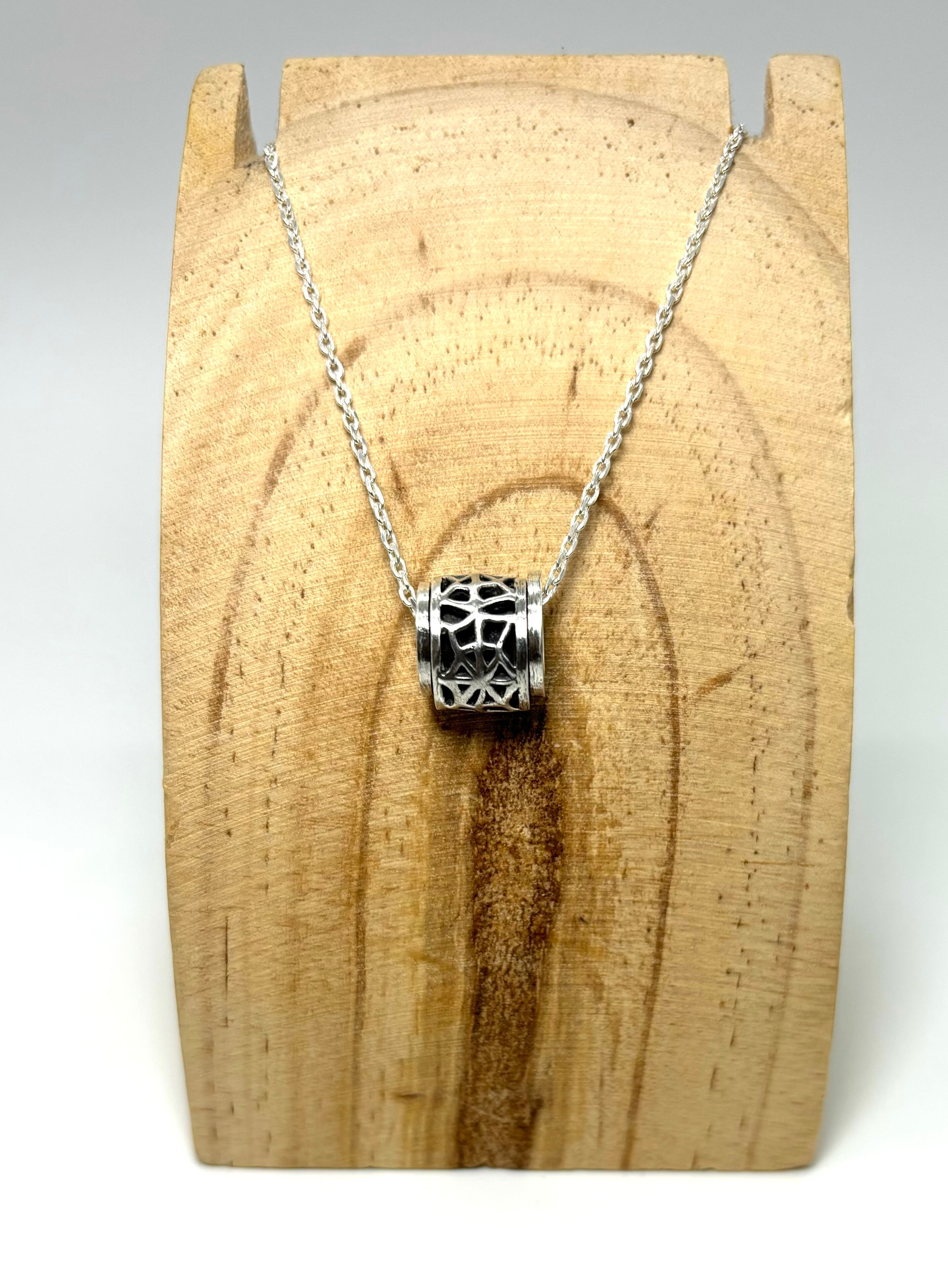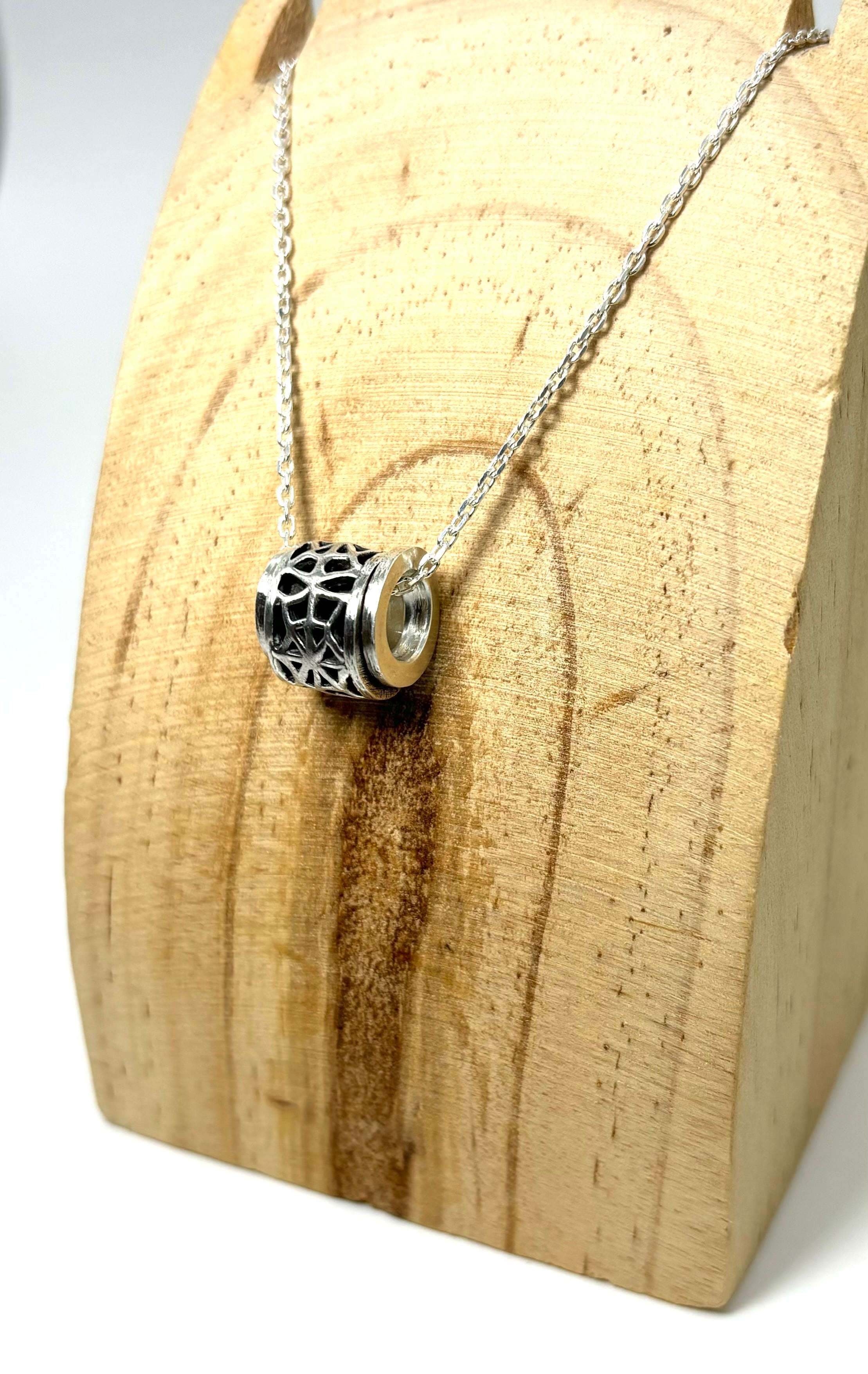 約6mmの穴が空いているため、チェーンだけでなくパーカーの紐に通したり、トンボ玉のように他のアクセサリーパーツと組み合わせて楽しむこともできます。