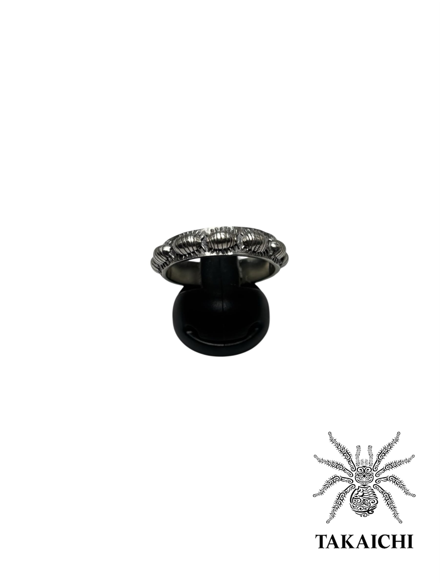 9匹のダンゴムシがリングの上に連なり行進している様な、ユニークなデザインのシルバーリング。